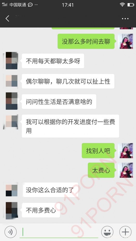 与夫妻分开之后,第二天的下午,对方丈夫(以下简称小c)小c给我发来了短信,问我昨天感觉如何? 我开玩笑的说:感觉一般,你太小了! 小c:啊,我也知道,我的确不是很大,是不是没有高潮啊?我说:没有,不过还好虽然小但是也够用,我不需要太大的,如果需要大的我就找老外了! 小c看出我在逗他 于是回答:那我的应该够用了,主要还是看感觉嘛,男人女人如果没有感觉,很难去高潮,我看到你那么有女人味,而且波涛汹涌,我就认定你了,心跳砰砰的,一直想要偷偷要你的wx,却没想到被你先下手了! 我还是比较保守哈哈! 我说:切,鬼才信! 那你不要我的还要我主动! 不过心里却很有感觉,因为我不太喜欢很油嘴滑舌的男人,看他老实,就加了他!