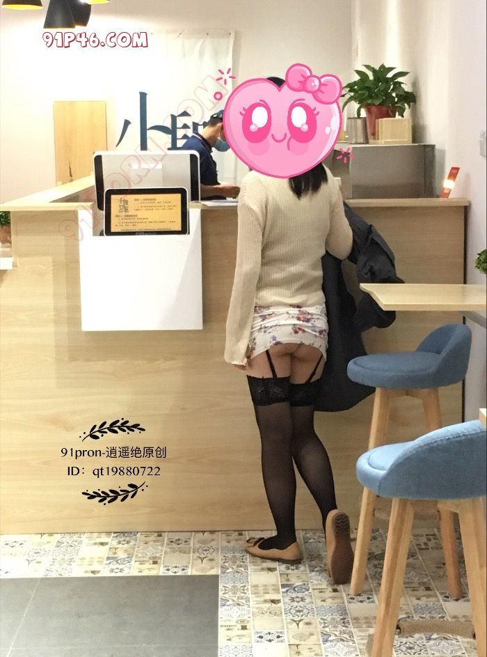 之后我们又来到一家甜品店,品尝了一些甜品。这家店沿街的一面墙和门都是玻璃的,从外面往里面看的话,可以直接看到她裙子里面的丁字裤。她在柜台点东西的时候,我在后面把她的裙子给掀了起来。当时的我就顾着拍照了,也没有注意外面有没有人看到。