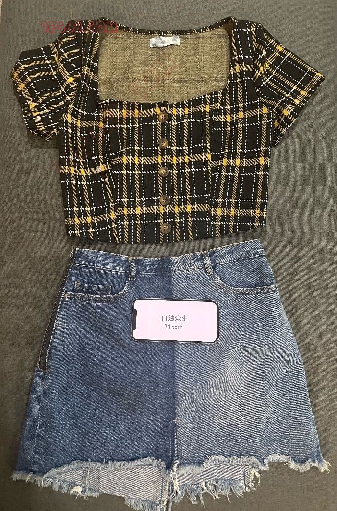 小v身上的衣服验证,黑黄格子上衣,双色牛仔裙