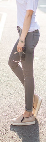 穿这样的紧身牛仔裤,要是有侧面腿照就更好了,不仅能展示纤细修长的腿还可以展现臀部的曲线!