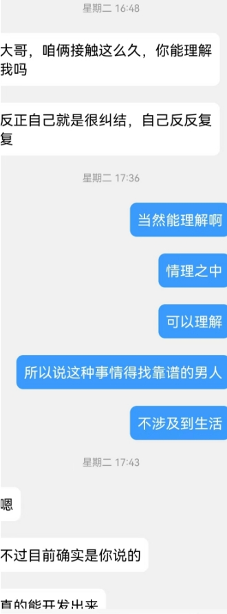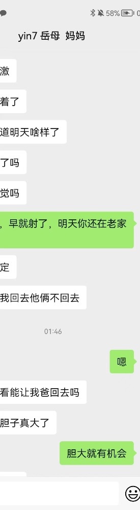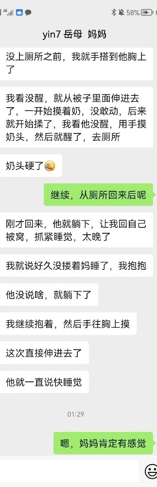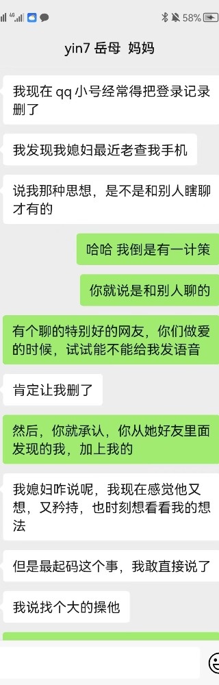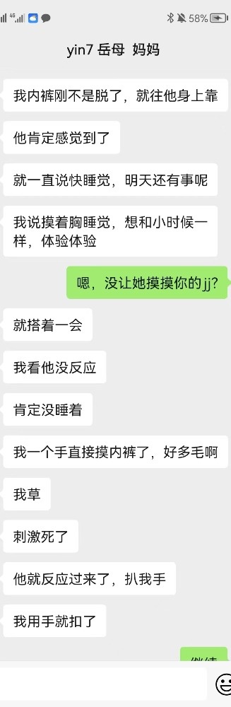 和这位兄弟认识得两年多了,成了无话不谈的朋友。曾经让我加过他老婆,也聊过一段时间,但是老婆太保守,后来把我删了。后来也让我加过他表姐,岳母。表姐聊了一段时间,后来因为我的小号被发现了,我就注销了,没再聊表姐,岳母没加上。